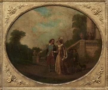 Scène galante dans un parc, huile sur toile, 40x48 cm