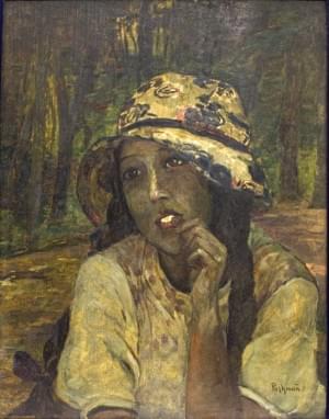 La Jeune fille au chapeau, huile sur panneau, signée, 57x37 cm