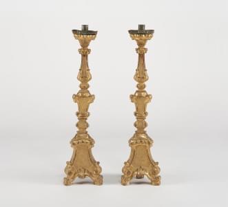Bois sculpté et doré, piètement tripode, H 112 cm