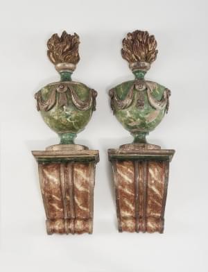 854. Paire de consoles surmontées de pot à feu d'époque néoclassique