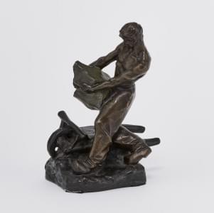 Travailleur chargeant la brouette, bronze à patine brune, signé,...