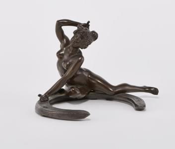 Femme nue sur fer à cheval, bronze à patine brune, signé, L 15 c...
