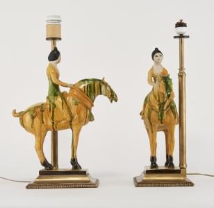 870. Paire de cavaliers dans le style Tang montés en lampe, Chine, XX...