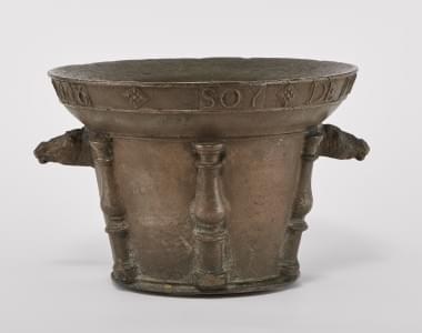 Bronze à motifs en relief, anses à tête de cheval, daté 1668, 20...