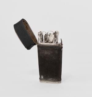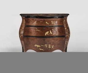 Trois tiroirs, bois et incrustation d'ivoire à décor de scènes d...