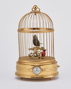 896. Vase néoclassique formant pendule tournante à décor doré au chin...