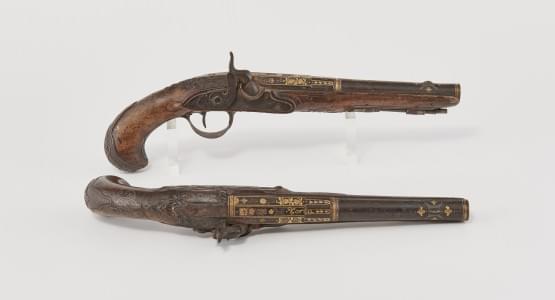 889. Paire de pistolets, XVIIIe s (transformés à percussion postérieu...