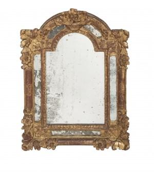Bois sculpté et doré, glace au mercure, 52x36 cm