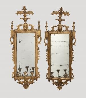 Bois sculpté, stuqué, glace au mercure, H 96 cm