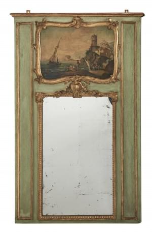Bois laqué vert rechampi or à décor d'une toile dans le goût de...