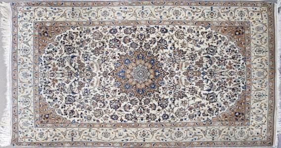 Laine à décor de motifs géométriques sur fond crème, 360x266 cm