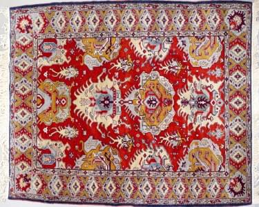 A décor d'un champ central orné de güls sur fond beige, bordure...