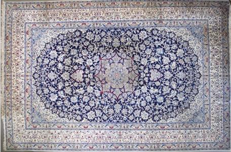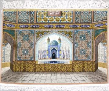 Laine et soie à décor de la mosquée bleue d'Isfahan, 125x155 cm...