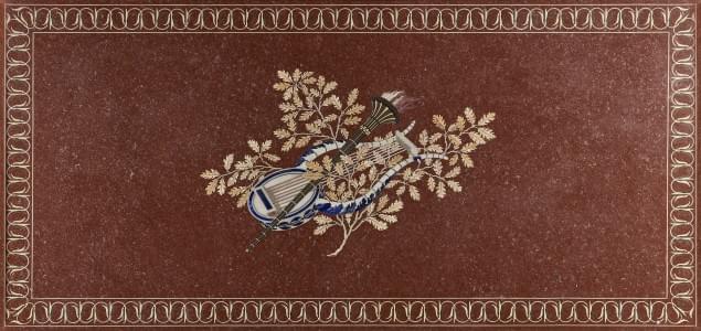 Marqueterie de marbres polychromes à décor d'un trophée musical...