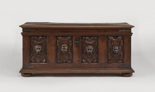 Noyer, à décor de têtes de lions et visages, 73x160x58 cm