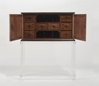 Deux vantaux démasquant des tiroirs, placage de bois fruitier à...