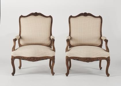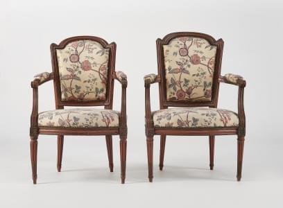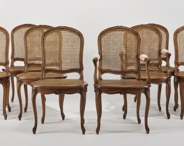944. Suite de six chaises et deux fauteuils de style Louis XV signés...