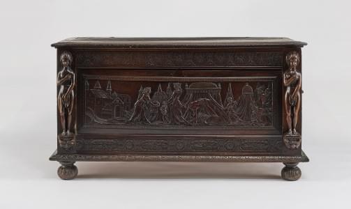 Façade à décor de Judith et Holopherne, noyer, 80x145x63 cm