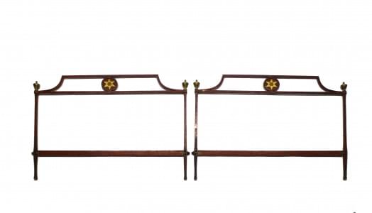 Fer forgé et laqué rouge, 88x214x114 cm. On joint un lit d'un mo...