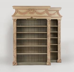 Bois laqué beige, peint faux marbre et rechampi rose, 230x160 cm
