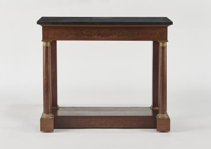 Deux tiroirs, marbre gris, acajou, 71x80x43 cm