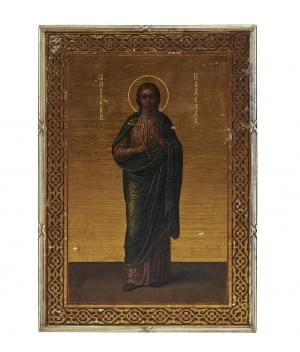 585. Fabergé, icône de Sainte Nadège dans un cadre à motif de ruban c...