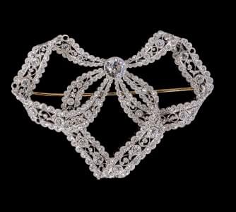 624. Broche en dentelle ajourée centrée d'un diamant taille ancienne...