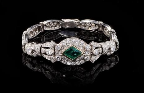 625. Bracelet Art déco centré d'une émeraude colombienne (env. 2,2 ct...