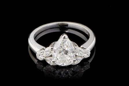 729. Bague sertie d'un diamant taille poire (env. 1,8 ct) épaulé de d...