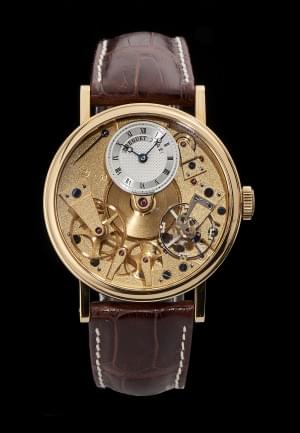 Cadran blanc, chiffres romains noirs, aiguilles dorées, réf. 142...