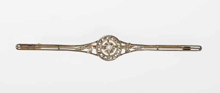 3102. Broche barrette sertie d'un petit saphir blanc