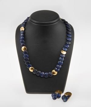 Or 750, L 42 cm. On joint des clips d'oreilles assortis en lapis...