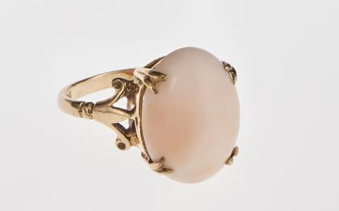 3107. Bague sertie d'un corail ovale taille cabochon