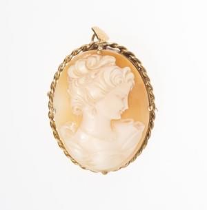 3142. Broche pendentif sertie d'un camée sur coquillage à portrait de...