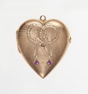 3167. Pendentif porte-photo en forme de cœur serti de deux rubis et d'...