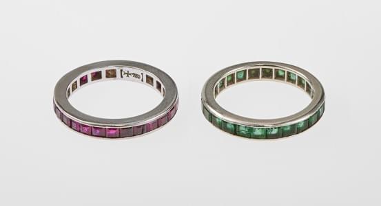 3173. Lot de deux anneaux tour complet, l'un serti d'émeraudes et l'au...