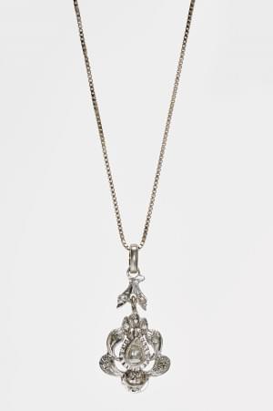 3179. Chaîne à maille vénitienne retenant un pendentif serti de roses...