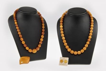3180. Lot comprenant deux colliers d'ambre, une broche et des clous d'...