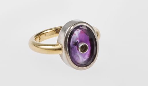 3197. Bague ovale sertie d'une améthyste centrée d'un petit diamant