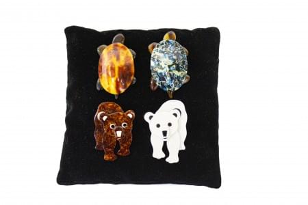 3125. Lea Stein, lot de quatre broches à motif de deux tortues et deux...