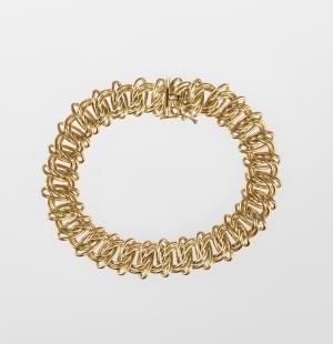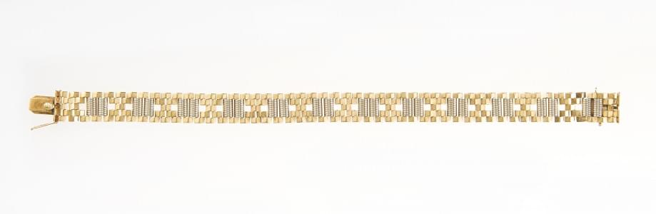 3338. Bracelet à maille fantaisie deux ors