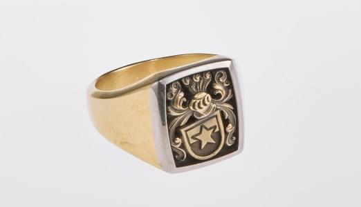 3314. Bague chevalière gravée d'armoiries