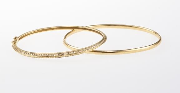 3310. Lot de deux bracelet joncs, l'un serti de diamants