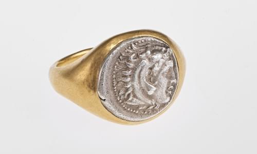 3317. Bague chevalière sertie d'une pièce dans le goût antique