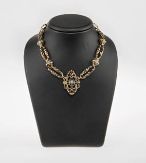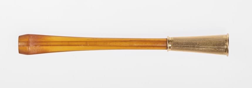 Métal doré et résine noire, terminé à chaque extrémité d'un onyx...