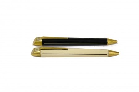 Métal et métal doré, résine noire et blanche, stylo bille serti...