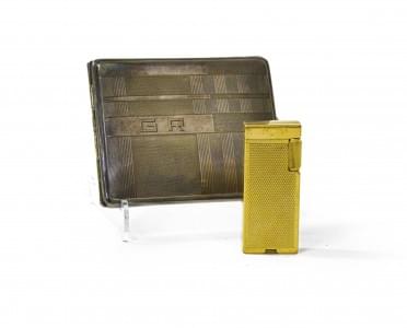 3354. Lot comprenant une boîte à cigarette monogrammée GR et un brique...