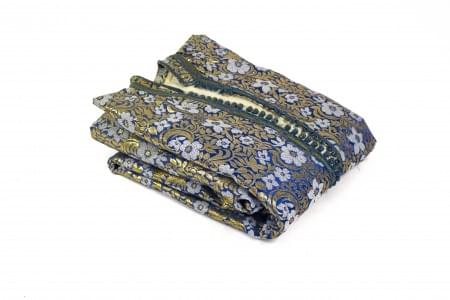 3355. Caftan marocain à fond bleu et motif de fleurs cousues de fil d'...