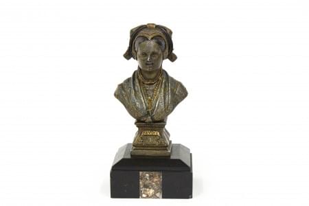 Métal et métal doré, résine noire, bleue et blanche, H 13 à 15 c...