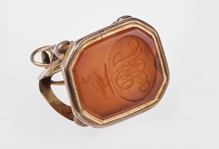 3375. Sceau serti d'une intaille sur cornaline